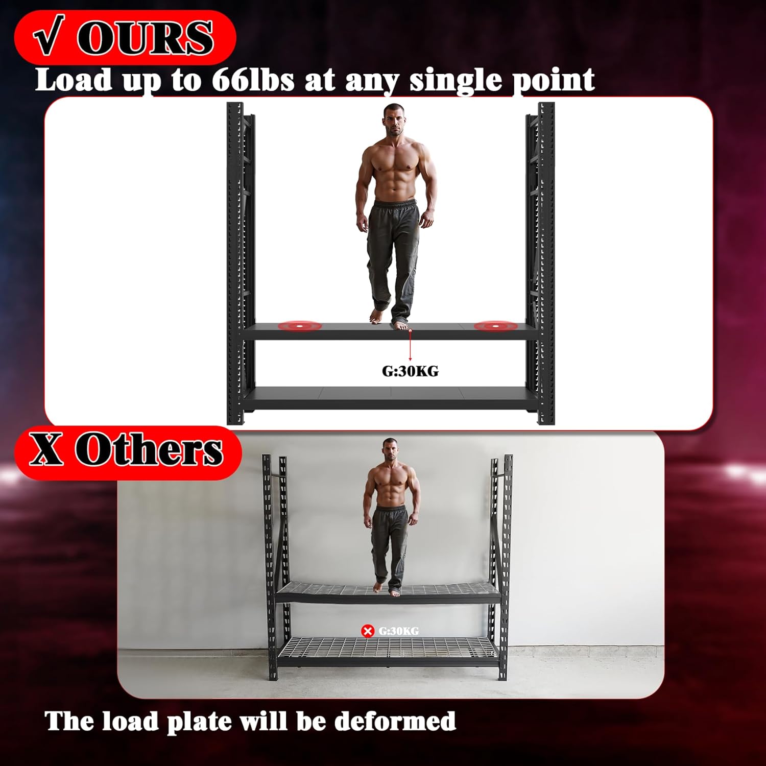 - Heavy Duty - each layer of load-bearing 1100lbs, the entire shelf total loads 5500 lbs, you can really organize a variety of super-heavy items, as 20 years of storage rack manufacturer, load-bearing capacity of real and reliable
