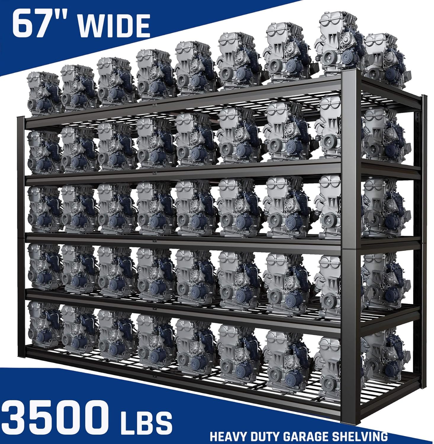 67" W Garage Shelving Heavy Duty, 67" W x 24" D x 84" H, Adjustable 5 Tier Metal Shelves, Commercial Metal Shelf Rack, Industrial Shelving