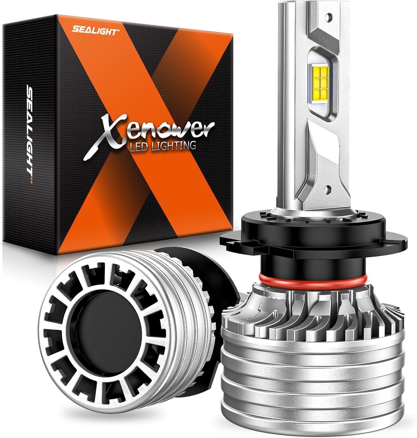 SEALIGHT X4I H7 Bulbs, 55000LM Super Bright H 7 Fog Bulbs with Adjustable Lock Ring, Cooling Fan, Plug and Play, Pack of 2