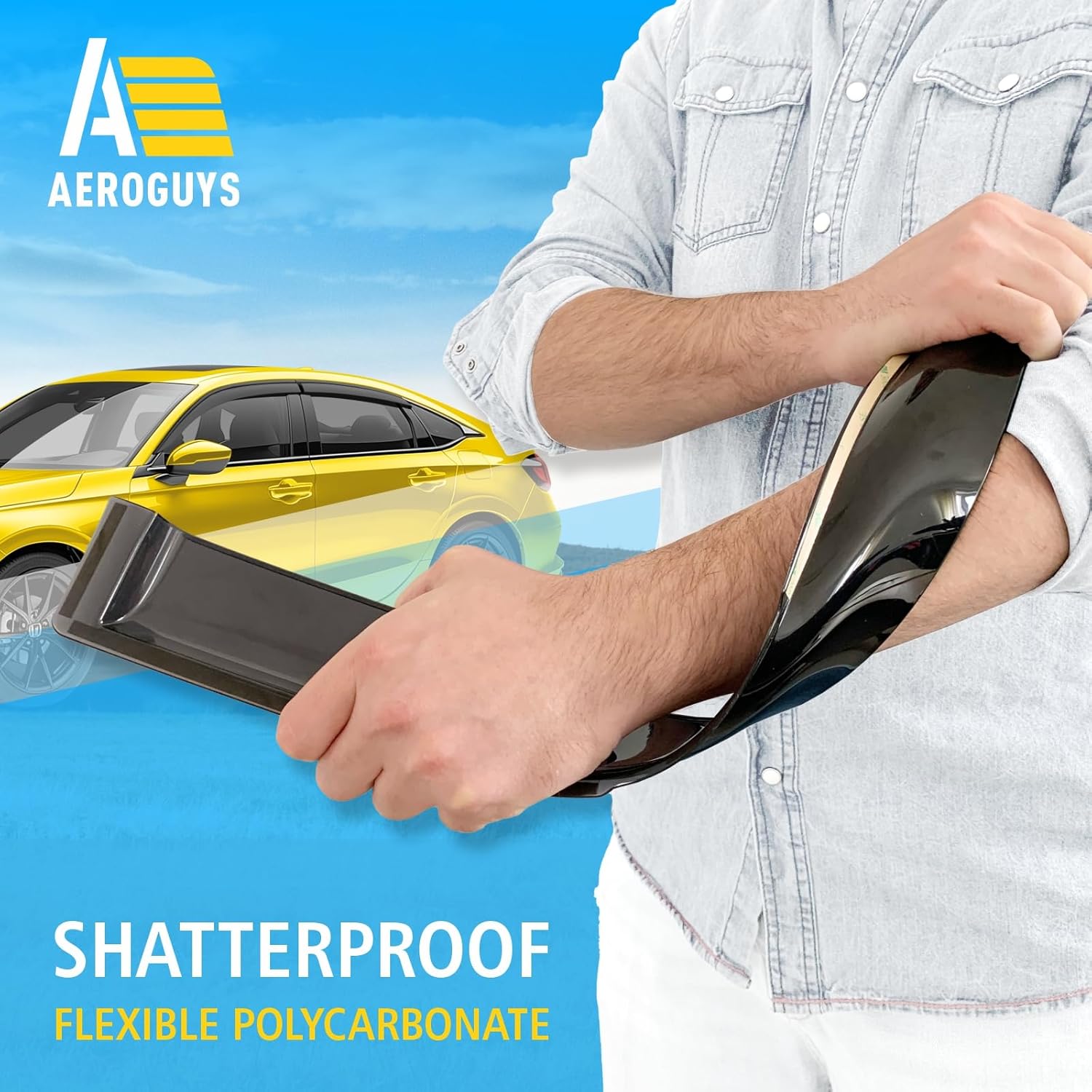 - Incredibly Durable AEROGUYS Auto Window Deflectors – They are made with strong and tough polycarbonate which is clear and scratch-resistant. They also provide UV protection making your ride more comfortable under all weather conditions.
