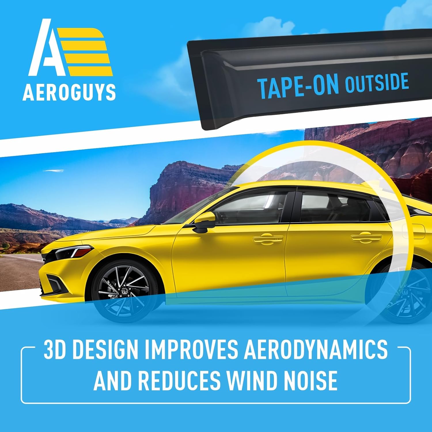 Extra Durable Window Deflectors Tape-On Window Visors Rain Guards Fit for Honda Civic 2022-2025 Sedan, Sun Visors, Wind Vent for Shades, Exterior Car Accessories - 4pcs. AG0959
