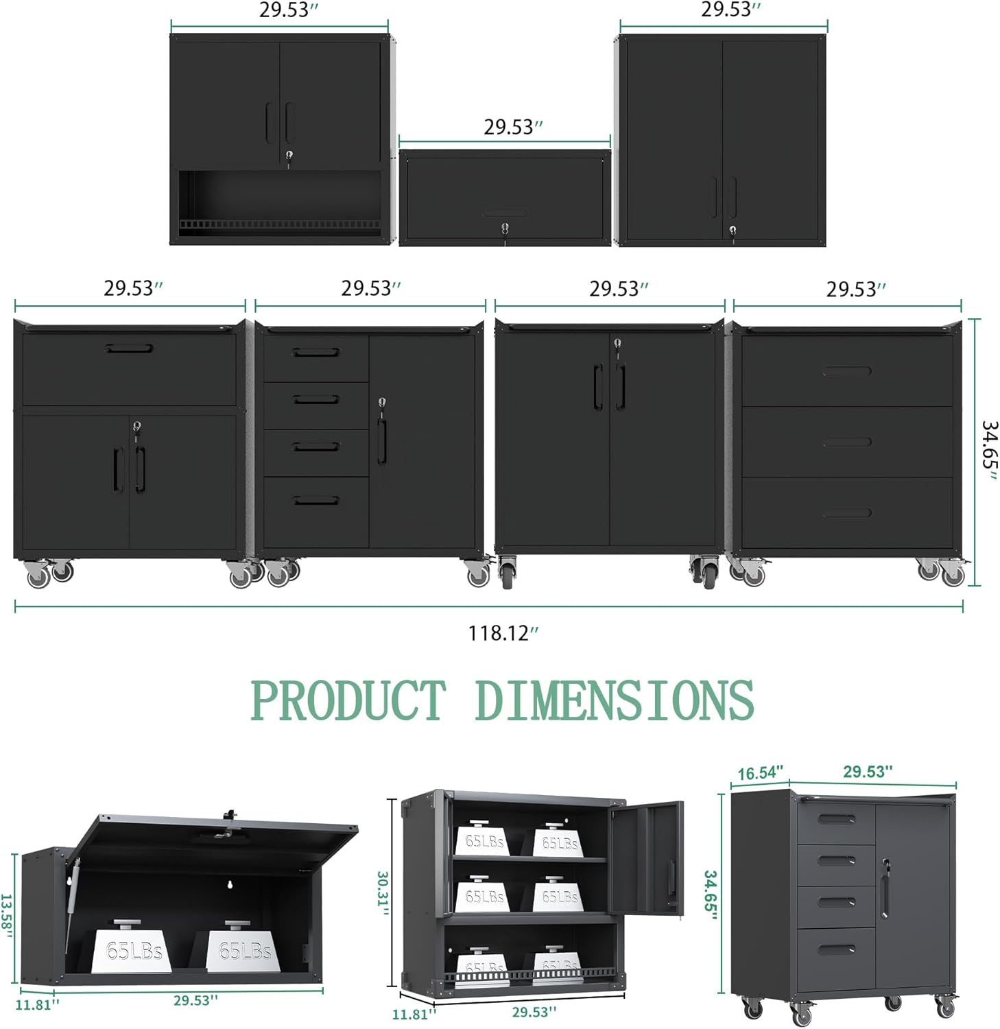 Metal Tool Cabinet,Garage Storage Cabinet System,Wall Cabinet & Locking Rolling Tool Cabinet with Doors and Adjustable Shelves,Steel Tool Cabinets for Home,Office (5 Pcs-StyleB, Black)
