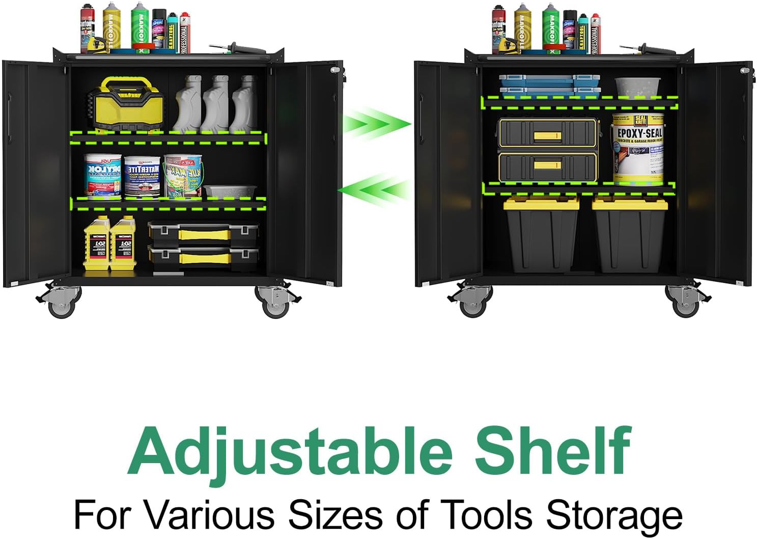 Metal Tool Cabinet,Garage Storage Cabinet System,Wall Cabinet & Locking Rolling Tool Cabinet with Doors and Adjustable Shelves,Steel Tool Cabinets for Home,Office (4 Pcs-StyleC, Black)