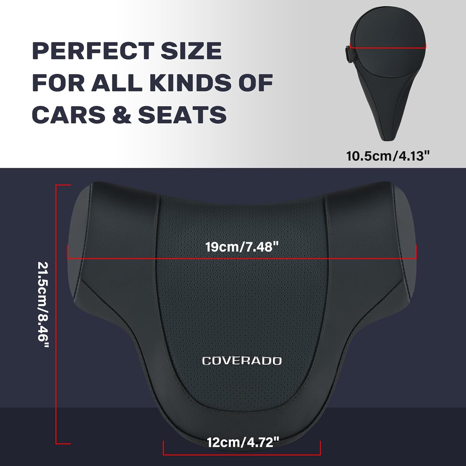 Coverado Car Headrest Pillow, Ergonomic Memory Foam Car Neck Pillow for Driving Seat with Adjustable Strap, Soft PU Leather Breathable Removable Cover Neck Support for Neck Pain Relief