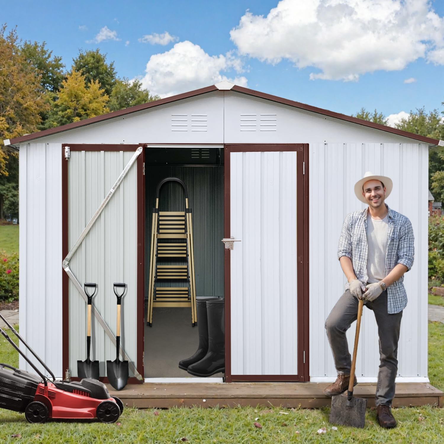 - 🔒 [Secure & Convenient Lockable Doors] Enjoy effortless access with the wide, classic Lockable Doors. Its smooth operation provides easy entry/exit regardless of shed placement. Enhanced security comes standard with a lockable latch system (padlock compatible - padlock not included), offering peace of mind that your valuables are safe within this secure storage house