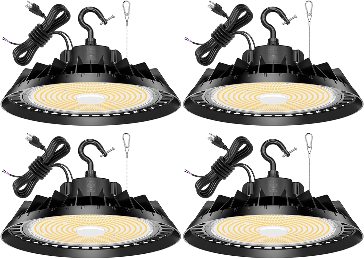 4Pack LED High Bay Lights, Super Bright 150W UFO High Bay LED Shop Lights, 22500LM 5000K, 0-10V Dimmable, 5' Cable Plug, IP65 Waterproof, ETL Listed Plug & Play Lighting for Factory Warehouse