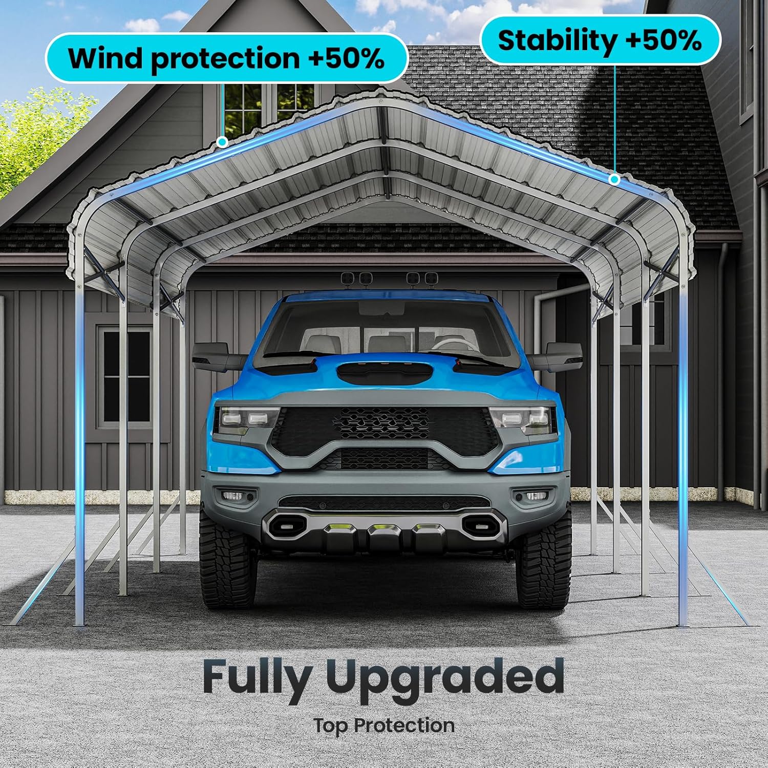 Heavy Duty Metal Carport – Sturdy Structure, All-Weather Protection, Easy Assembly for Cars, Trucks, Boats, Tractors, and Outdoor Storage (White, 10X15 FT)