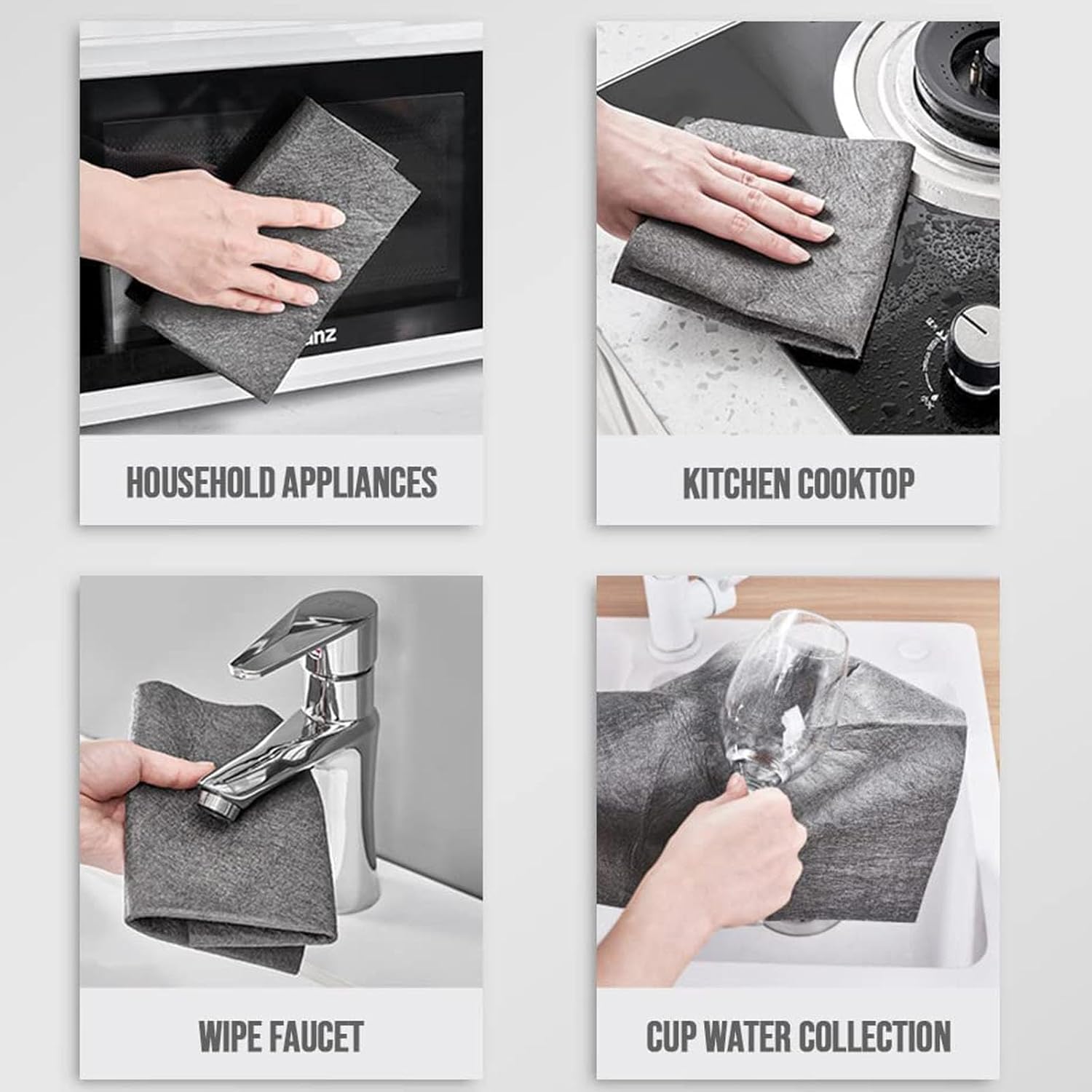 FETNHU Non-Woven - Super Absorbent 11.8" x 11.8" Lint-Free Cleaner, Reusable Thickened Magic Cleaning Cloth, Multipurpose Magic Cloths for Cleaning Glass, Cars, Kitchen, Window, Mirrors (10PCS-Gray)