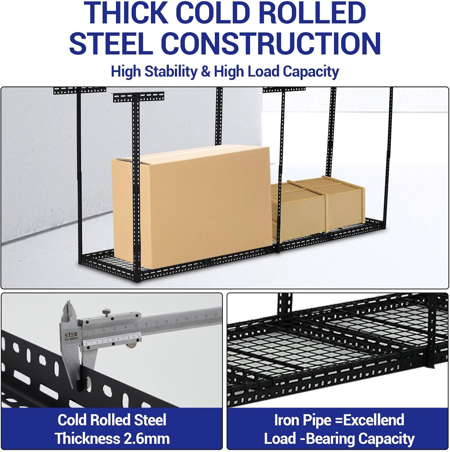 - Space-Saving 53 Cu.Ft Storage: Maximize unused ceiling space with 96"x24"x40" dimensions, adding 53 cubic feet of organized storage. The open grid design provides easy visibility/access to stored items while freeing up garage floor space for cars, workbenches, or bikes.