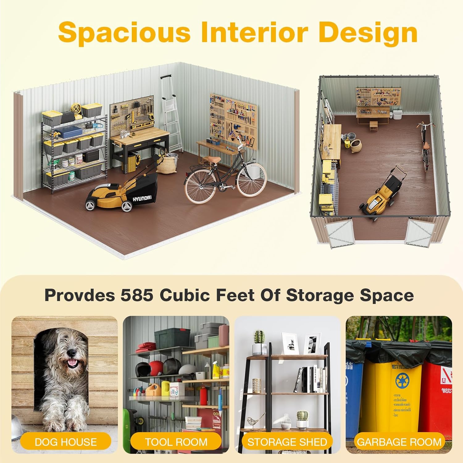 - Durable Galvanized Steel Construction: Expertly crafted with thick galvanized steel panels and reinforced structural engineering, this metal shed delivers exceptional longevity and rust resistance. The anti-rust powder-coated surface withstands harsh weather, ensuring years of reliable outdoor storage without corrosion, making it a premier storage shed for homeowners.