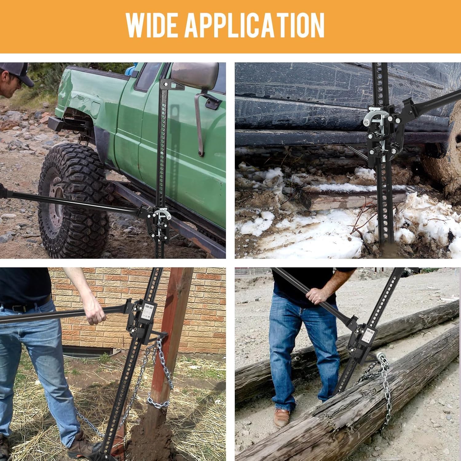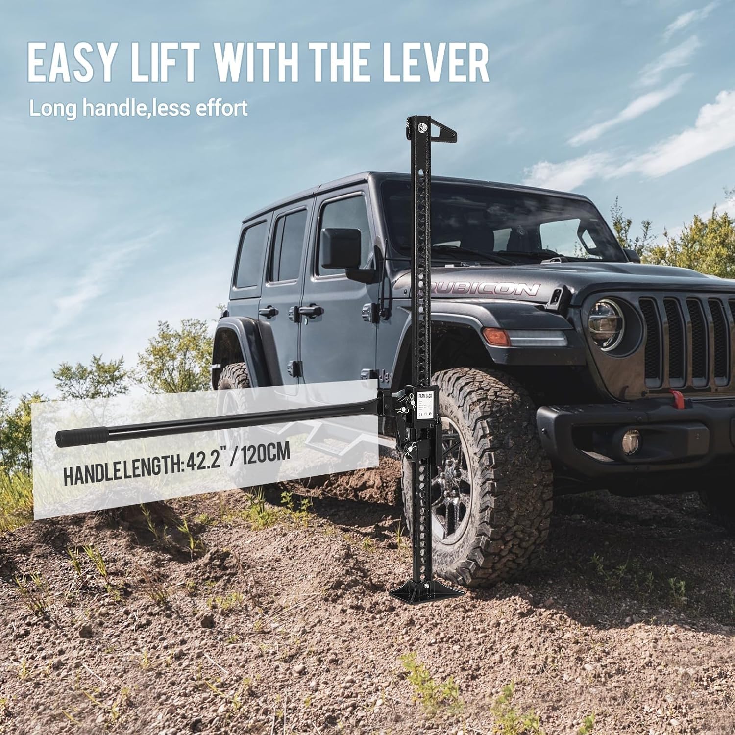 - ULTRA-STABLE & SAFE OFF ROAD JACK :Designed with a wide base for superior stability, this hi lift jack ensures secure operation on uneven terrain. The ratcheting mechanism allows precise height adjustments, making it ideal for offroad jack recovery and heavy-duty farm tasks.