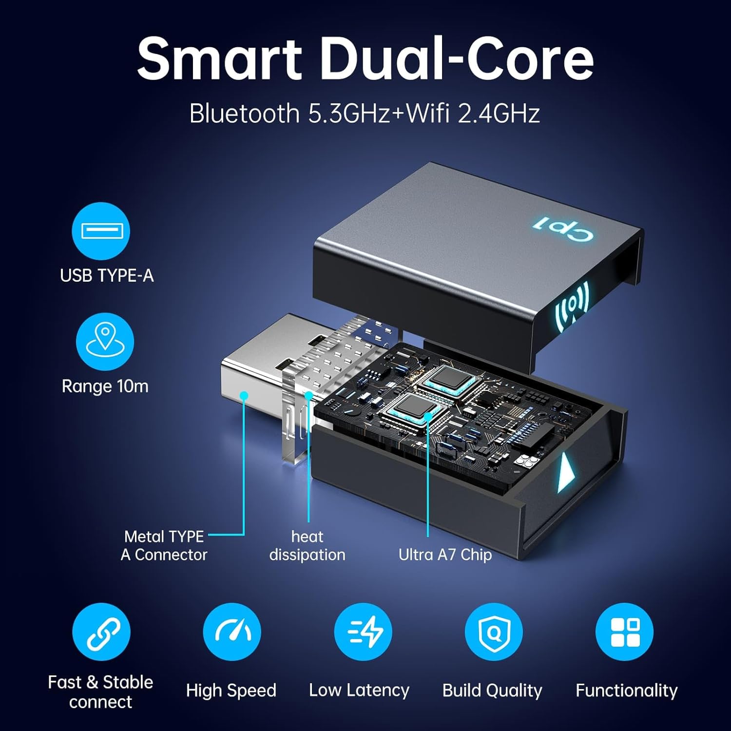 - Plug and Play Easy to Operate:Your ultimate driving assistant - The compatible with CarPlay wireless adapter (CP1:car--play-kits)requires no additional apps or software—just one word, one touch, and one knob to effortlessly control your Car Play. Save at least 50% of your time,powered by lightning-fast connectivity and ultra-low latency of under 1s, such as navigation, music playing, Siri assistant, phone calls, radio etc.