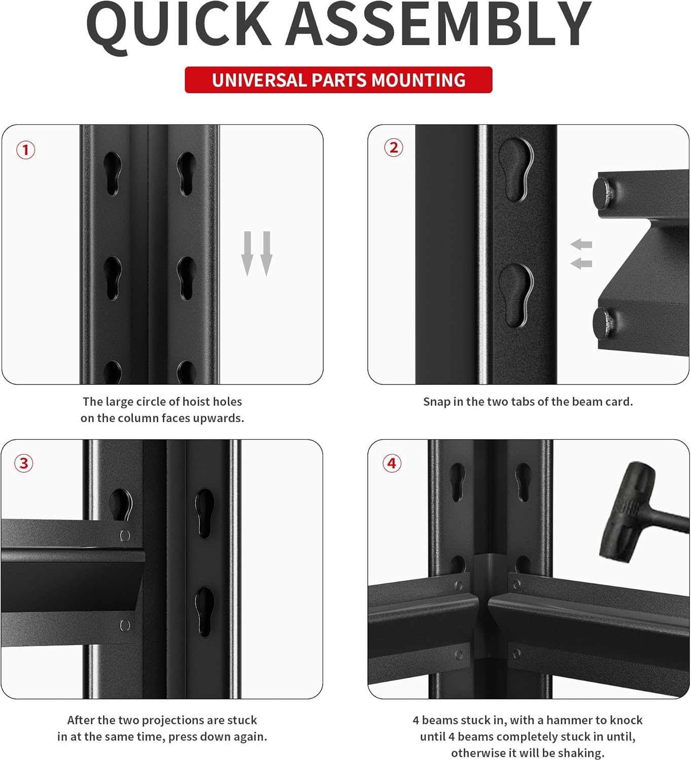 - 🍖【Simple Assembly Process】Say goodbye to complicated setups. This garage storage shelf is designed for quick and hassle-free assembly, so you can get organized without any stress.