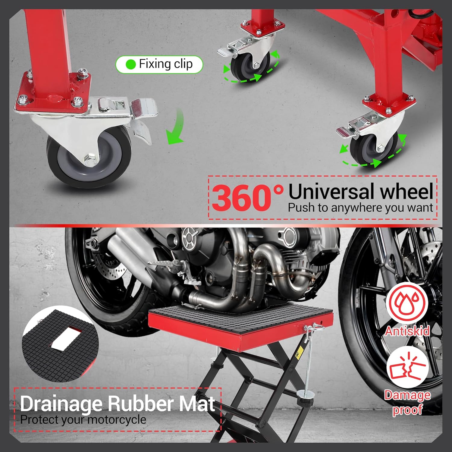 - Space-Saving & Versatile Storage ✔ Compact Scissor Design: Fits in tight spaces like lockers, corners, or garages when not in use. ✔ Universal Compatibility: Works with motorcycles, scooters, ATVs, and dirt bikes (max 350 lbs).