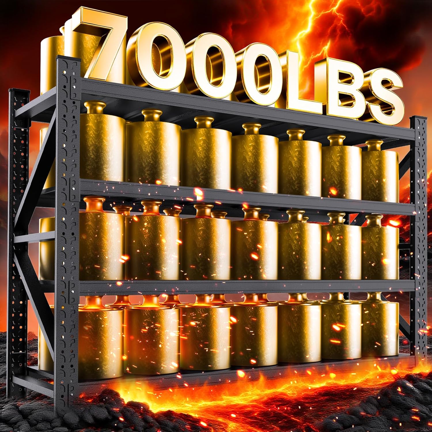 - Ultra-Stable Heavy Duty Garage Shelving: This 4-tier all-steel heavy duty shelving features a continuous upright column design with seamless connections, significantly reducing risks from loose joints. Reinforced diagonal braces distribute weight evenly, ensuring rock-solid stability even when bearing loads up to 6,000 lbs. This metal shelving provides the most solid support for your garage storage, giving you complete peace of mind